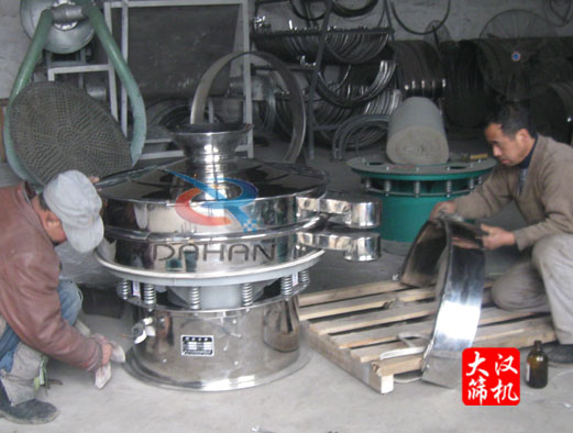 大漢機械生產人員在安裝振動篩