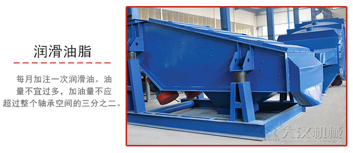 5、高效振動篩若采用潤滑脂潤滑,應每月加注一次潤滑油。油量不宜過多,加油量不應超過整個軸承空間的三分之二,否則會引起軸承溫度過高。